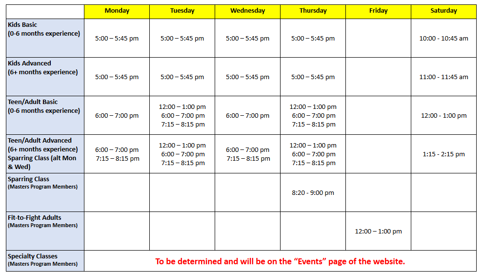 Open to all teen / adult Masters Program & Master’s Trial Program members.